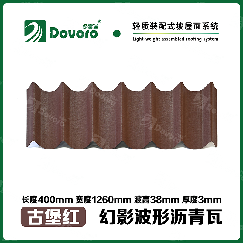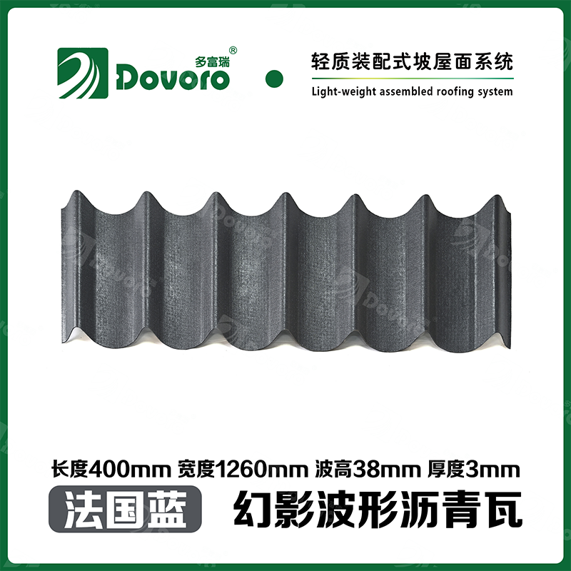 多富瑞幻影波形瀝青瓦是由礦植物纖維板經(jīng)過整形后浸漬瀝青而成,一次成型的基層板在高溫下浸漬瀝青,使瓦材整體性更加牢固;熱固性樹脂保證了瓦材的強(qiáng)度和剛度;進(jìn)口原料配合先進(jìn)的著色工藝確保顏色持久、混色噴涂工藝使瓦材外觀高雅、色彩美觀、立體質(zhì)感。