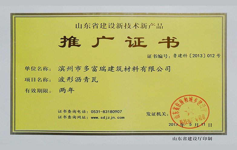 公司以研發(fā)和創(chuàng)新為核心,擁有3項(xiàng)發(fā)明專利,11項(xiàng)實(shí)用新型專利,5項(xiàng)外觀專利,首創(chuàng)中國波形瀝青屋面材料,達(dá)到歐盟同類產(chǎn)品質(zhì)量標(biāo)準(zhǔn)。新生產(chǎn)基地占地30000余平方米,年產(chǎn)量為400萬平方米/年。
