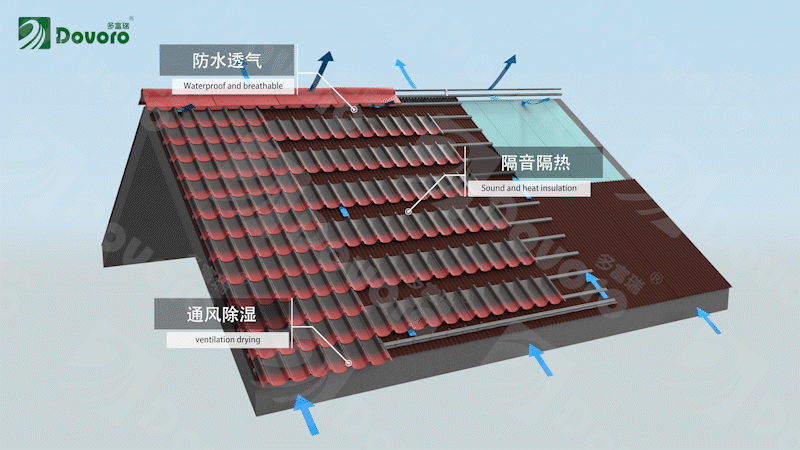 空氣是流通的,屋面的溫度就不容易傳遞到下方的空間。同時(shí)有助于降低屋面瓦的表面溫度,延長屋面使用壽命。