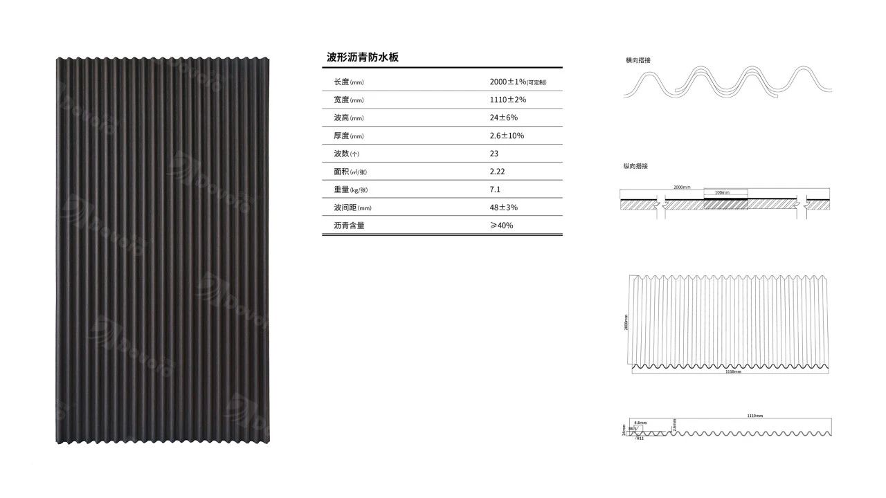 作為屋面防水的第二道屏障,波形瀝青防水板采用防排結(jié)合的設(shè)計,擁有更加陡峭的波峰,雨水排出速度更快,在遇到極端暴雨的情況下,即使有部分雨水來不及排出屋面,從上層瓦材滲入下方,也可以通過波形瀝青防水板繼續(xù)排出屋面。兩層屋面、雙重防水,避免形成積水產(chǎn)生漏水。