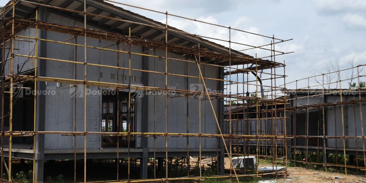 本項(xiàng)目中建筑采用鋼結(jié)構(gòu)裝配式設(shè)計(jì),波形瀝青防水板可以在各類屋面基層上快速安裝。