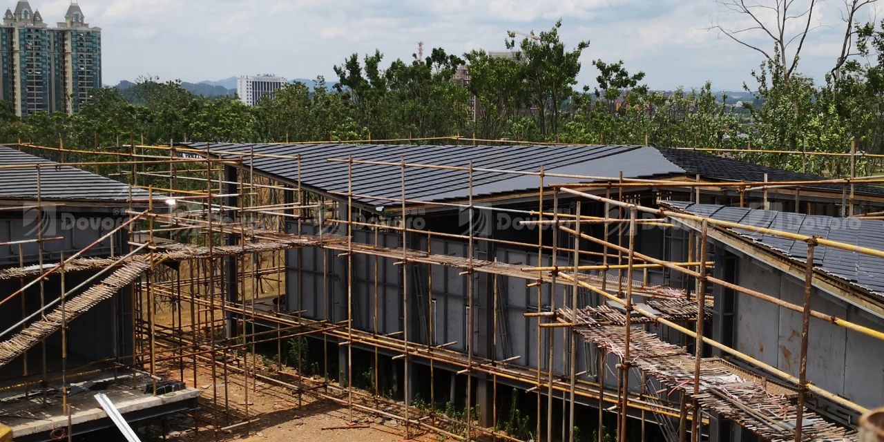 鳳凰山山地運(yùn)動(dòng)營地位于江西省景德鎮(zhèn)珠山區(qū),是一個(gè)集休閑運(yùn)動(dòng)、野外露營、生態(tài)旅游為一體的城市公園。本項(xiàng)目使用波形瀝青防水板作為瓦材下覆層施工,總施工面積約3500平米。