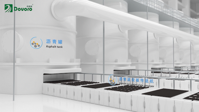 在高溫高壓瀝青罐中,瀝青會(huì)牢牢浸漬在紙板里,與紙板融合一體。當(dāng)紙板從瀝青罐中出來時(shí),已經(jīng)可以擔(dān)任遮風(fēng)擋雨的任務(wù)了。