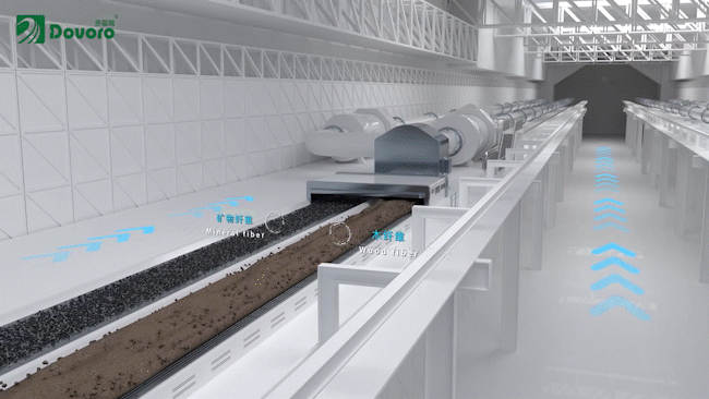 我們?cè)诶锩婕尤氲V物纖維,然后將木纖維與礦物纖維的混合物一起送入纖維攪拌罐。