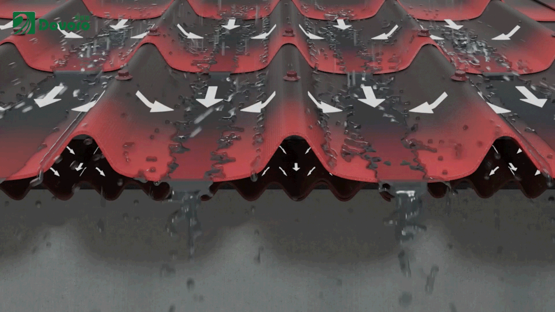 A:多富瑞輕質(zhì)坡屋面系統(tǒng)采用了防排結(jié)合的設(shè)計,除了在材料里加入瀝青以達(dá)到優(yōu)異的防水性能,還使用波紋設(shè)計以達(dá)到更有效的排水效果,在材料和結(jié)構(gòu)上相輔相成。