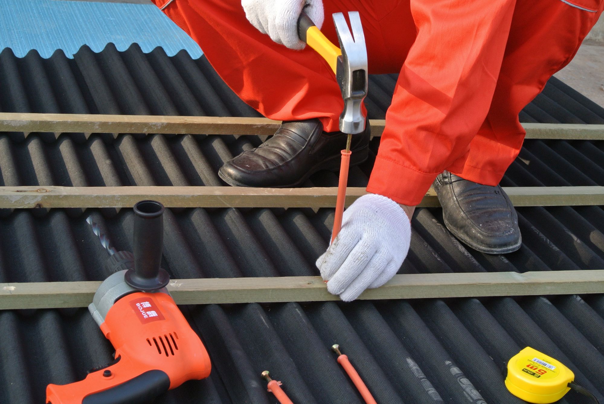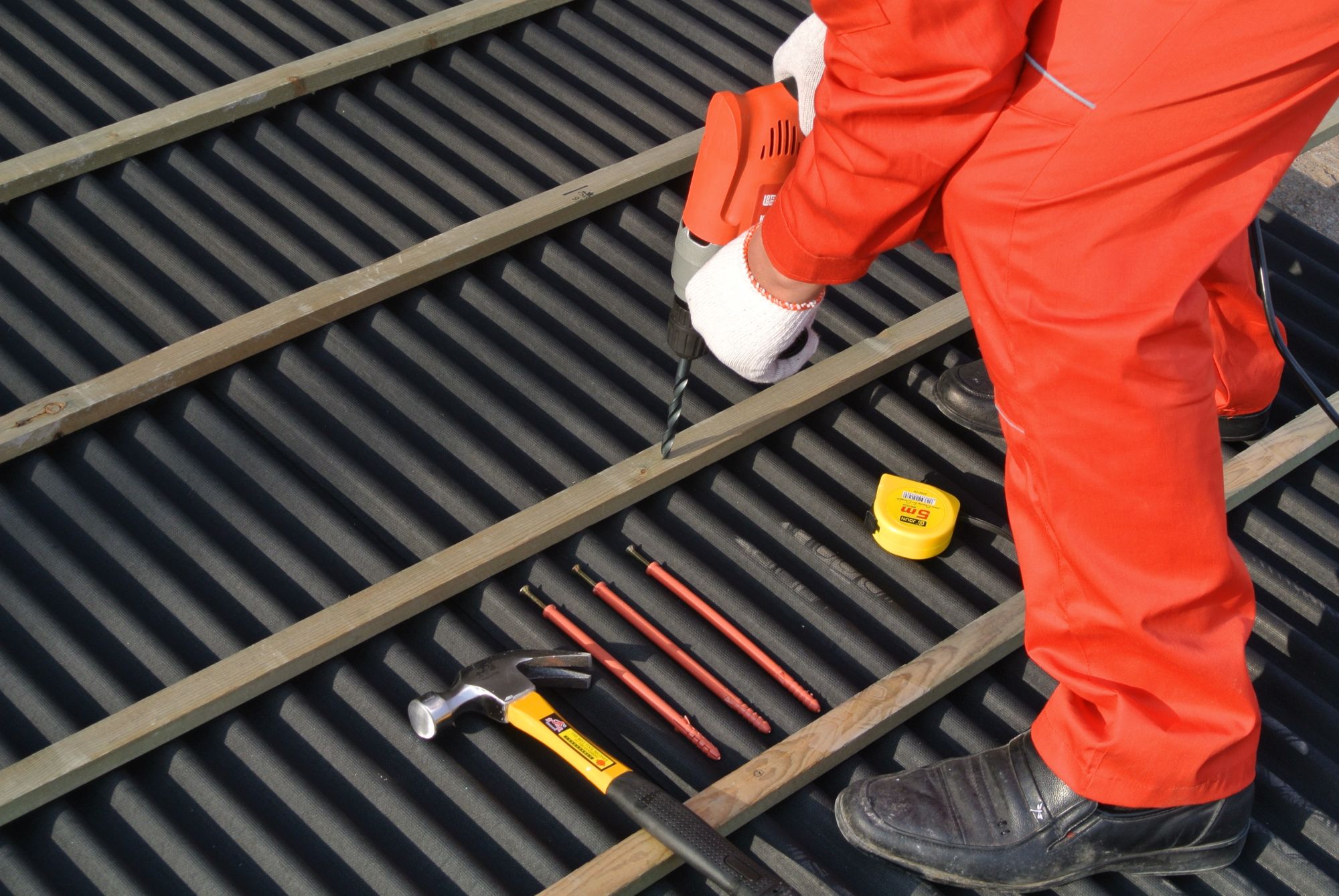 用多富瑞專用釘將掛瓦條、防水板和保溫板固定在基層混凝土上