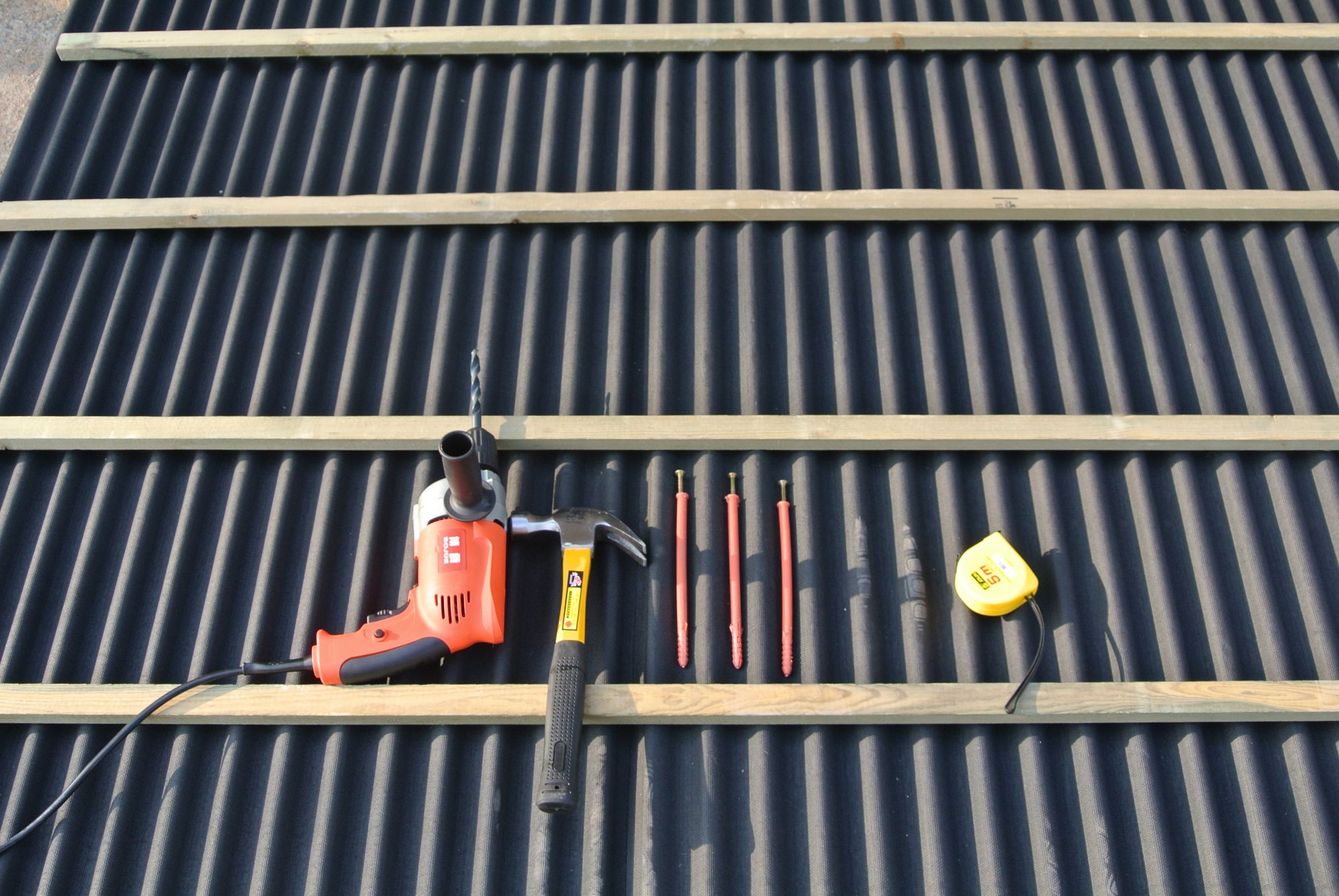 擺放掛瓦條,間距依屋面瓦要求而定